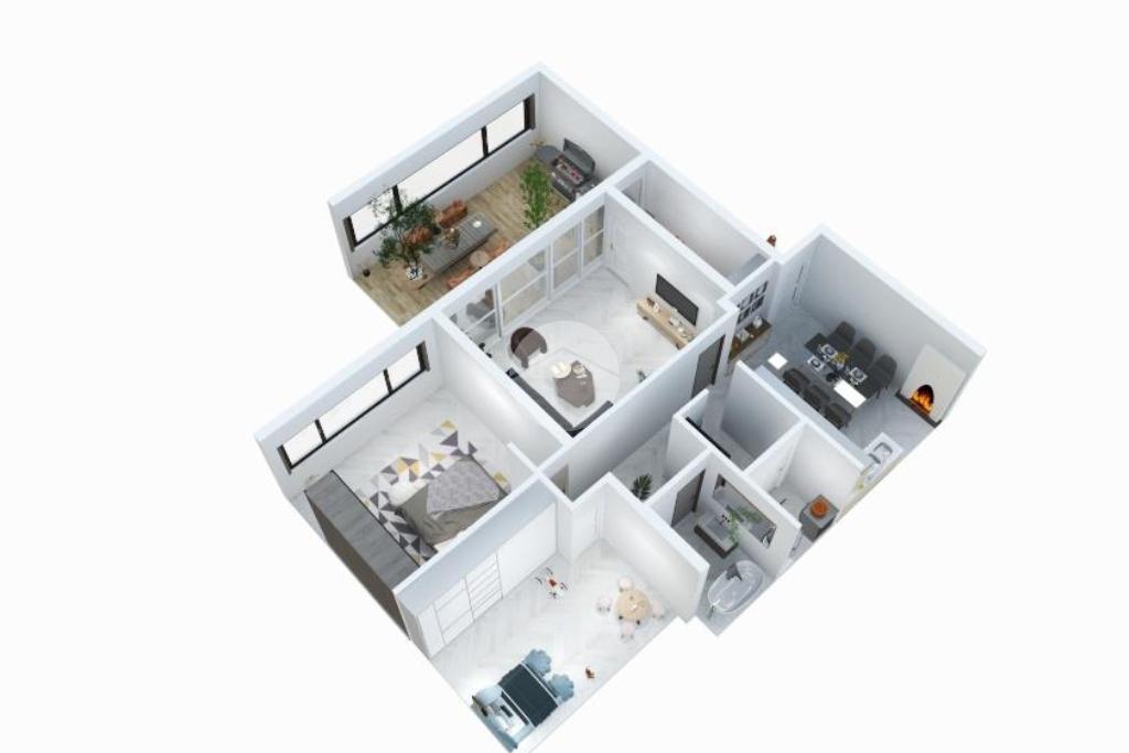 Situato all’ultimo piano, l’appartamento si estende su 124 mq e accoglie in una zona giorno ampia e accogliente, dove il soggiorno si apre su un suggestivo giardino pensile: un angolo verde sospeso, perfetto per momenti di relax o convivialità.