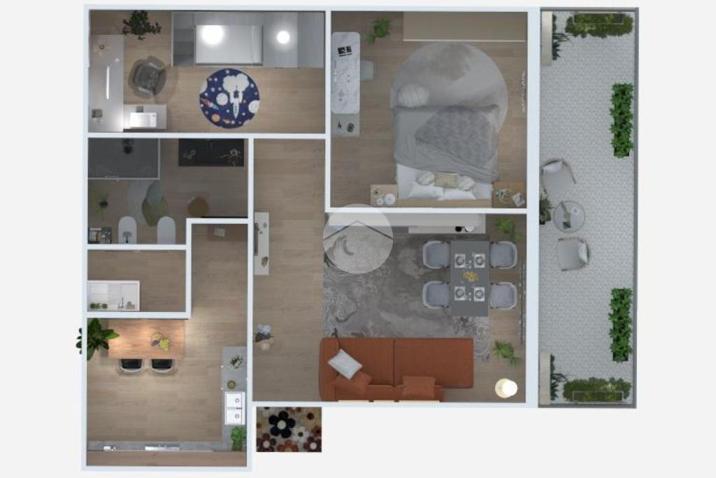 L’ingresso è protetto da portone blindato e accompagna in un soggiorno open space accogliente, collegato alla cucina abitabile: uno spazio vivo, dove le giornate iniziano con calma e finiscono con la sensazione di essere nel posto giusto.