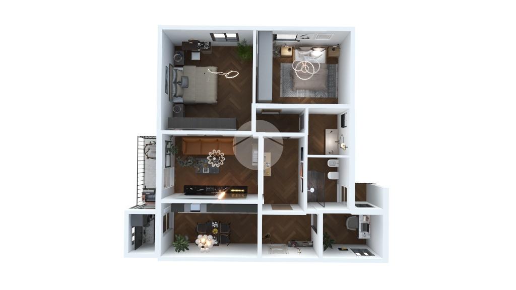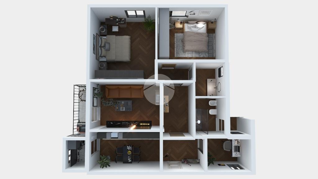 La zona notte offre due camere matrimoniali di ampia metratura, ideali per garantire comfort, privacy e libertà di movimento. A completare gli spazi c’è uno studio versatile, perfetto come ambiente per lo smart working, stanza hobby o terza camera. I soffitti alti aumentano ulteriormente la percezione di spazio e donano respiro a tutta la casa.