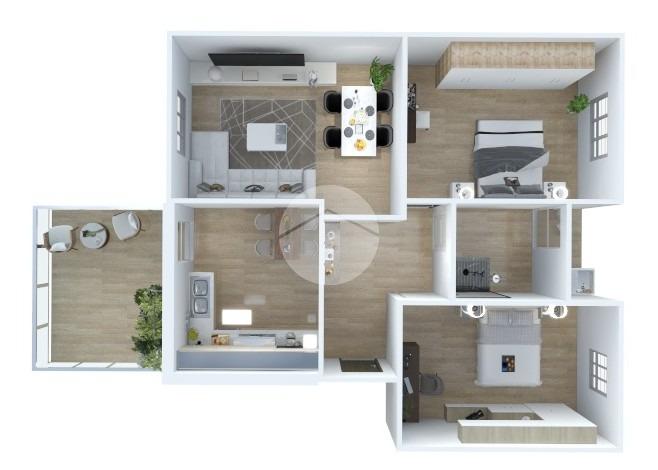La zona notte comprende due camere da letto, con possibilità di realizzare una terza camera, soluzione ideale per famiglie in crescita o per chi ha bisogno di uno spazio in più.