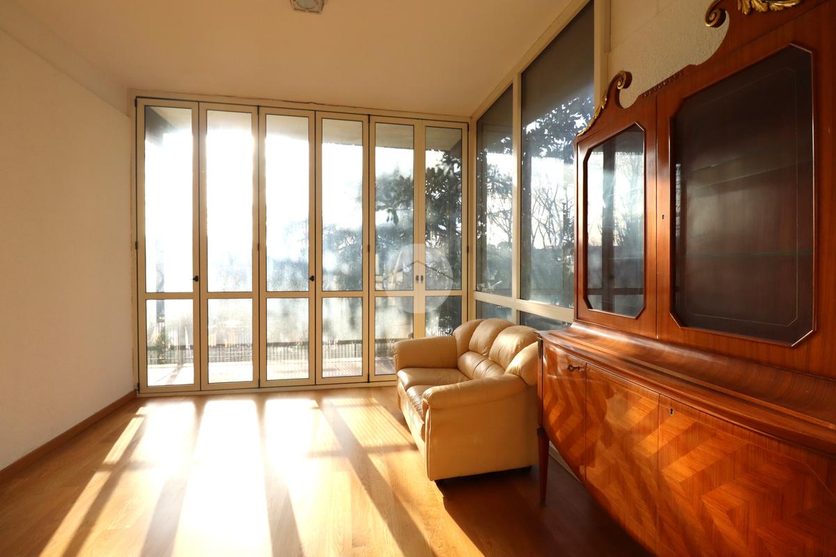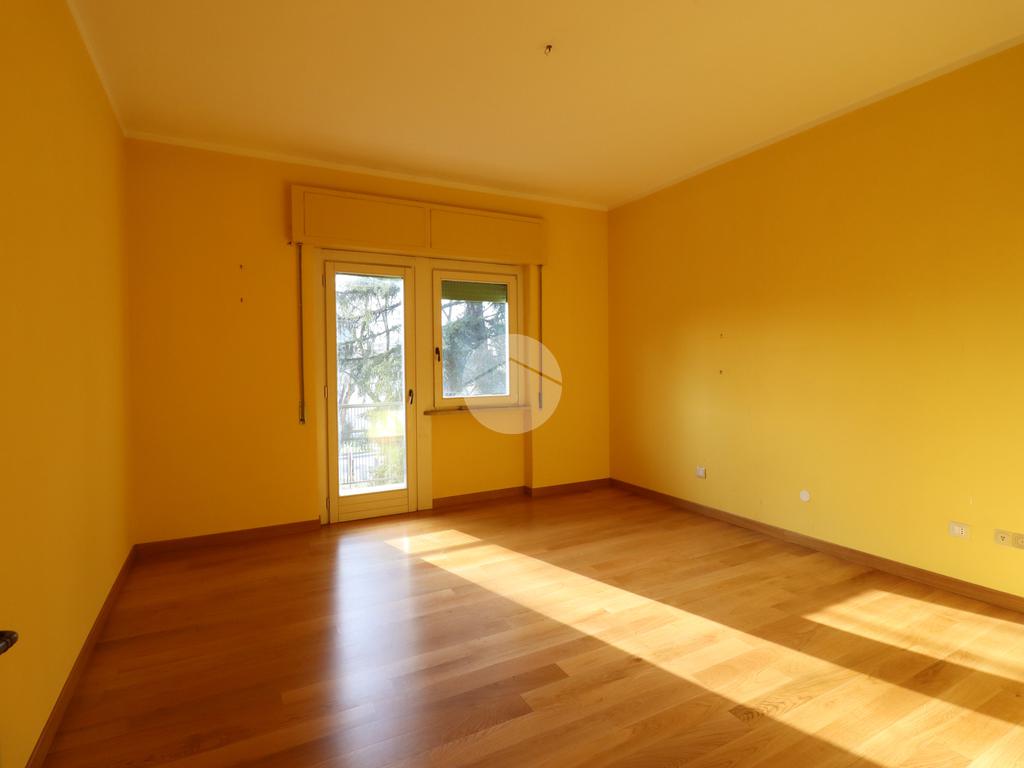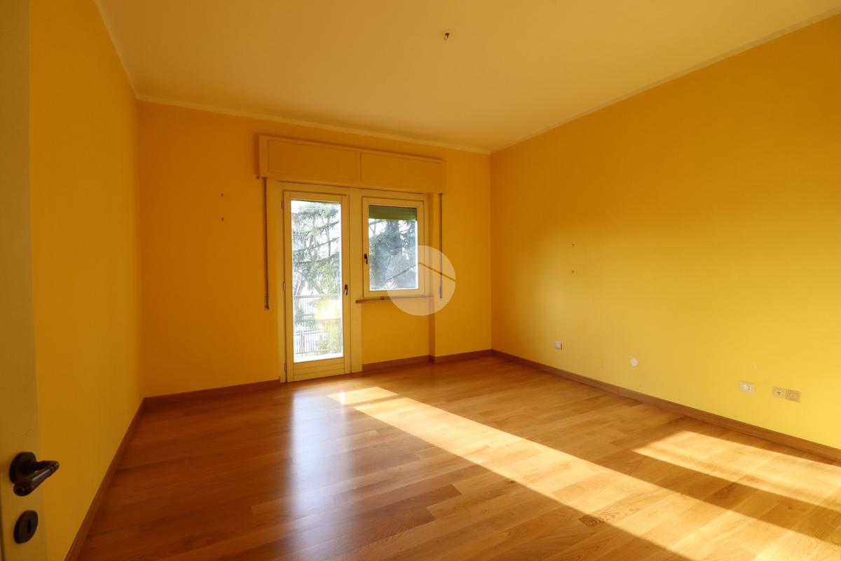 Il parquet chiaro, uniforme in tutta la casa, crea continuità ed eleganza, mentre le porte bianche e gli infissi in legno con doppio vetro uniscono estetica e prestazioni, garantendo isolamento e comfort.